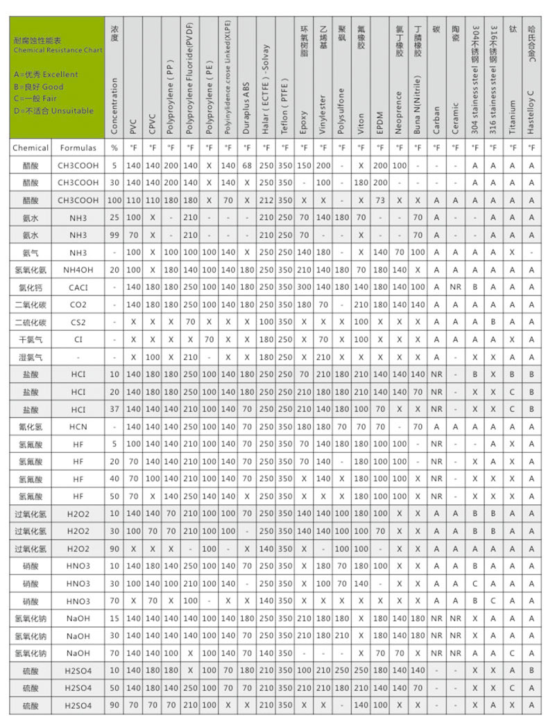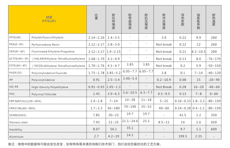 四氟材料和其他材料的防腐性能對比: