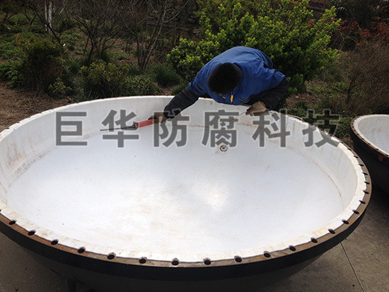 2、采用緊襯的大型設備的鋼殼體可以整體制造而不必進行分段,這樣可徹底解決因分段造成法蘭過多而造成的泄漏,同時也降低設備鋼殼體的造價和提高了村里后設備的承壓能力.同時鋼殼體的幾何形狀和尺寸大小都不受限制,即使長方體也可以實現村里,這是松襯無法實現的.
